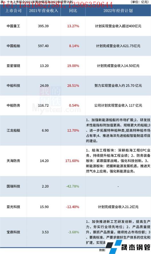 10大上市船企2022年經(jīng)營計劃以及2021年船舶類業(yè)務完成具體情況如下: