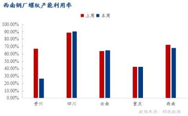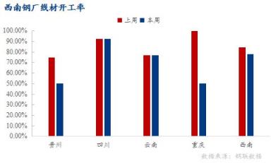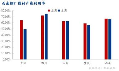 重慶區域:一無縫厚壁鋼管廠家因坯料不足,短期停產,線材產能利用率56.36%,環比下降2.89%;開工率50%,環比下降50%;周產量1.95萬噸,環比減少0.1萬噸。
