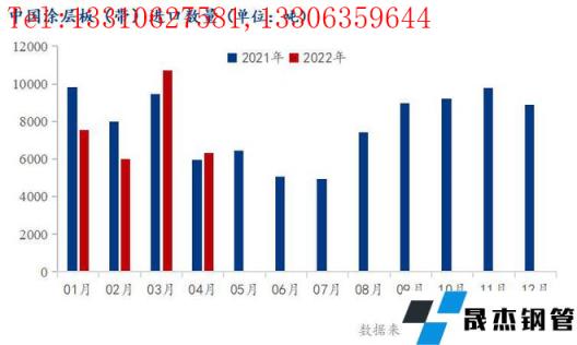 海關(guān)總署數(shù)據(jù)顯示,2022年4月份我國涂層板(帶)進(jìn)口0.63萬噸,月環(huán)比降幅40.87%,年同比增幅6.39%。1-4月涂層板(帶)進(jìn)口3.06萬噸,年同比降幅7.83%。