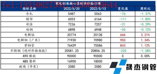 免責聲明:本網站(山東聊城晟杰無縫鋼管廠www.ginginbaby.com)刊載的“家電原材料周報(5.16-5.20)”等均源于網絡,版權歸原作者所有,且僅代表原作者觀點,本文所載信息僅供參考。轉載僅為學習與交流之目的,如無意中侵犯您的合法權益,請及時聯系刪除。本網站刊登此篇文章并不意味著本站贊同其觀點或證實其內容的真實性,我們不對其科學性、嚴肅性等作任何形式的保證。如果侵犯了您的版權,請盡快聯系我們予以撤銷,謝謝合作!