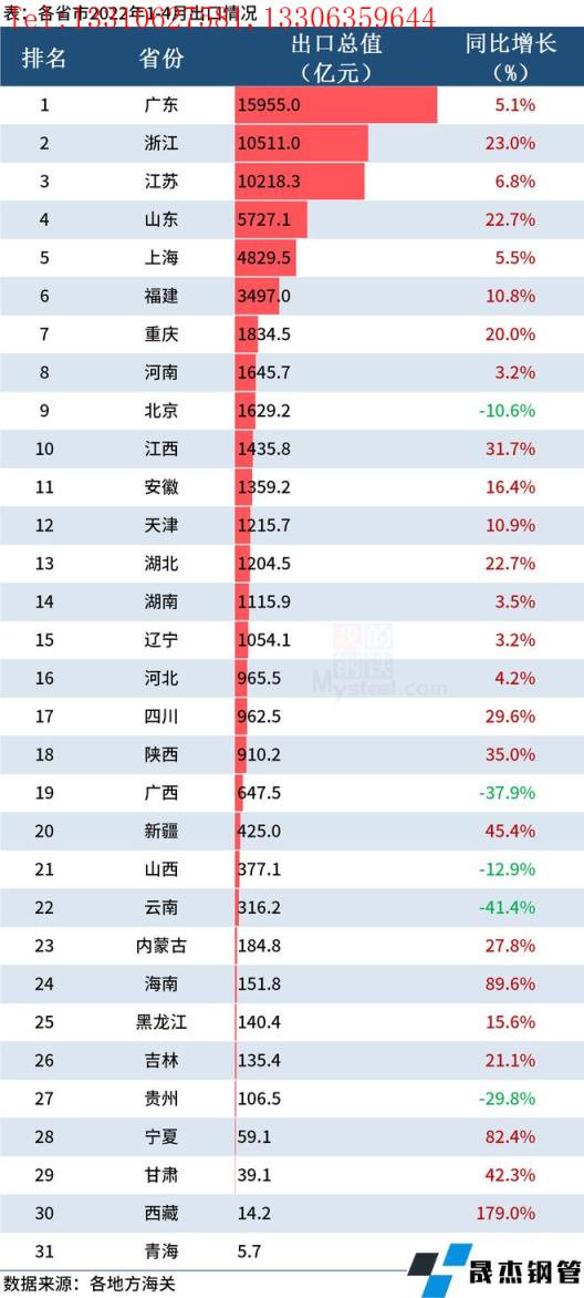 免責(zé)聲明:本網(wǎng)站(山東聊城晟杰無縫鋼管廠www.ginginbaby.com)刊載的“前4月全國分省市外貿(mào)數(shù)據(jù)出爐,19地出口增速超10%”等均源于網(wǎng)絡(luò),版權(quán)歸原作者所有,且僅代表原作者觀點(diǎn),本文所載信息僅供參考。轉(zhuǎn)載僅為學(xué)習(xí)與交流之目的,如無意中侵犯您的合法權(quán)益,請及時(shí)聯(lián)系刪除。本網(wǎng)站刊登此篇文章并不意味著本站贊同其觀點(diǎn)或證實(shí)其內(nèi)容的真實(shí)性,我們不對(duì)其科學(xué)性、嚴(yán)肅性等作任何形式的保證。如果侵犯了您的版權(quán),請盡快聯(lián)系我們予以撤銷,謝謝合作!