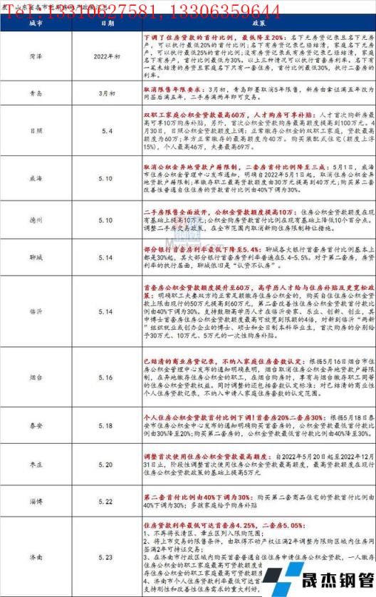 免責聲明:本網站(山東聊城晟杰無縫鋼管廠www.ginginbaby.com)刊載的“山東多地“松綁”樓市  各市陸續出臺調整政策”等均源于網絡,版權歸原作者所有,且僅代表原作者觀點,本文所載信息僅供參考。轉載僅為學習與交流之目的,如無意中侵犯您的合法權益,請及時聯系刪除。本網站刊登此篇文章并不意味著本站贊同其觀點或證實其內容的真實性,我們不對其科學性、嚴肅性等作任何形式的保證。如果侵犯了您的版權,請盡快聯系我們予以撤銷,謝謝合作!