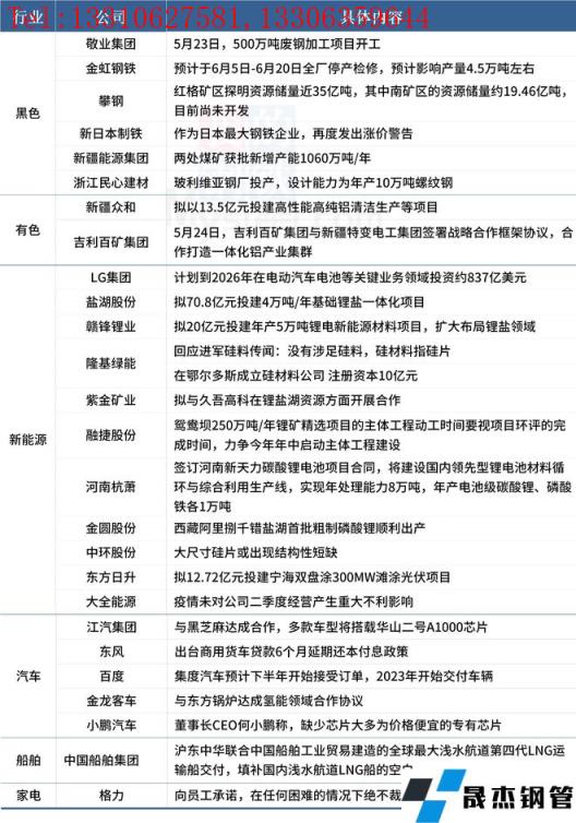 金虹鋼鐵預(yù)計(jì)于6月5日-6月20日全廠停產(chǎn)檢修,預(yù)計(jì)影響產(chǎn)量4.5萬(wàn)噸左右;新疆眾和擬以13.5億元投建高性能高純鋁清潔生產(chǎn)等項(xiàng)目;LG集團(tuán)計(jì)劃到2026年在電動(dòng)汽車電池等關(guān)鍵業(yè)務(wù)領(lǐng)域投資約837億美元;格力向員工承諾,在任何困難的情況下絕不裁員。具體情況如下: