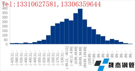 從卷螺差的年度跟蹤數據看,期貨市場卷螺差基本落在-200與500的區(qū)間內。而回溯兩個品種上市交易來的所有時間段數據,我們發(fā)現,卷螺差值的概率分布基本符合一般正態(tài)分布形態(tài),因此可以進行相關和回歸等統(tǒng)計分析,可基于統(tǒng)計原理進行相關套利操作。同時,回溯兩個品種2009年以來現貨市場的價差值,其概率分布圖形狀跟期貨市場價差值大體一致。如圖1、圖2和圖3所示。