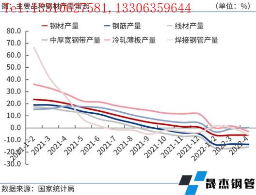 2022年4月份,鋼筋、線材、中厚寬鋼帶等日均產(chǎn)量為68.5萬噸、41.5萬噸、55.2萬噸,分別較上月增加2.7萬噸、1.6萬噸和2.6萬噸;冷軋薄板、焊接厚壁鋼管等日均產(chǎn)量11.5萬噸和16.0萬噸,分別較上月減少2.8萬噸和0.8萬噸。由于國內(nèi)疫情反復(fù),預(yù)計(jì)5月上半月主要品種厚壁無縫鋼管日均產(chǎn)量高位運(yùn)行,下半月建筑厚壁無縫鋼管生產(chǎn)企業(yè)因虧損減產(chǎn)。