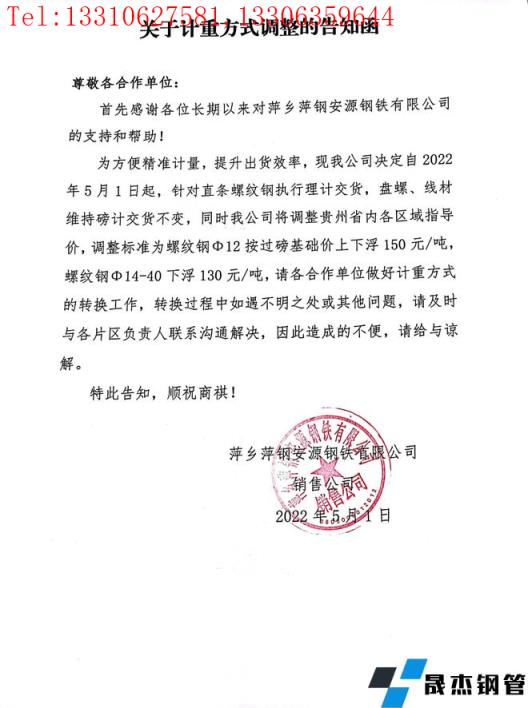 免責聲明:本網站(山東聊城晟杰無縫鋼管廠www.ginginbaby.com)刊載的“萍鄉萍鋼安源鋼鐵有限公司關于對貴州區域計重方式調整的告知函”等均源于網絡,版權歸原作者所有,且僅代表原作者觀點,本文所載信息僅供參考。轉載僅為學習與交流之目的,如無意中侵犯您的合法權益,請及時聯系刪除。本網站刊登此篇文章并不意味著本站贊同其觀點或證實其內容的真實性,我們不對其科學性、嚴肅性等作任何形式的保證。如果侵犯了您的版權,請盡快聯系我們予以撤銷,謝謝合作!