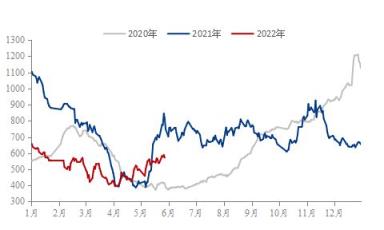 再來看,2022年1-4月我國冷軋板(帶)出口總量共計44.74萬噸,年同比降幅高達86.47%。雖然1-4月份出口數(shù)據與同期相比均存在較大差異,但環(huán)比數(shù)據卻是在緩慢增長。4月冷軋出口價格窄幅下跌,月環(huán)比跌31美元/噸。從市場反饋看4月下旬受國內價格震蕩下行,以及國外需求下降,出口報價下跌,出口價格在931美元/噸左右。從調研的情況看,近期國內冷軋出口價格一般,國外市場需求略有放緩,內外價差利潤尚可,國內出口貿易環(huán)節(jié)積極性一般,預計5月冷軋出口價1000美元/噸以內。從預期數(shù)據來看,國外需求緩慢恢復,預計5月出口環(huán)比或繼續(xù)大幅增加。