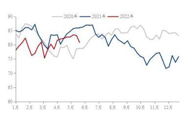 首先,供給端方面,據調研顯示,截至2022年5月27日,37家熱軋板卷生產企業(yè)中,無縫厚壁鋼管廠家產能利用率為80.87%,能夠從圖2可以觀察到2022年1-5月份,熱軋產能利用率是低于2021年同期水平,因此無縫厚壁鋼管廠家熱軋產量給到市場的供給壓力是在持續(xù)減弱,對于熱軋價格起到了一定的支撐作用。再來看下無縫厚壁鋼管廠家的冷軋產能利用率, 2020年與2021年冷軋產能利用率均值分別為77.96%與81.05%。截至2022年5月27日,29家冷軋板卷生產企業(yè)中,冷軋產能利用率為83.04%,從年同比數(shù)據對比之下,能夠反映出冷軋產能利用率已經達到相對飽和狀態(tài)。