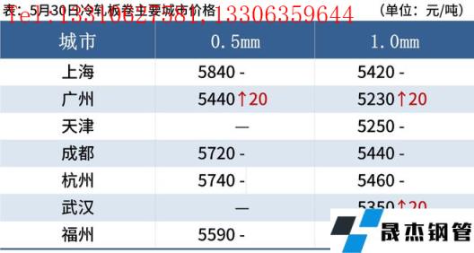 冷軋板卷:5月30日,全國24個主要城市1.0mm冷卷均價5428元/噸,較上個交易日上漲3元/噸。大多市場持穩報價,上海市復產復工逐步推行,資源流通速度逐步加快,大部分倉庫都能加工提貨,運費約為正常時期的1.5倍,但商家資金和庫存壓力仍較大;西北地區烏魯木齊疫情管控較為嚴格,由于近三個月持續虧損,訂貨成本偏高,現貿易商訂貨積極性差。心態方面,京津冀地區由于本月無縫厚壁鋼管廠家結算多數并不理想,與市場價格形成倒掛,貿易商持謹慎觀望態度。綜合來看,預計31日國內冷軋板卷價格以穩為主。