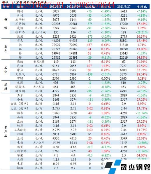 免責(zé)聲明:本網(wǎng)站(山東聊城晟杰無縫鋼管廠www.ginginbaby.com)刊載的“周報(bào):大宗工業(yè)原材料、能源及農(nóng)產(chǎn)品價(jià)格周報(bào)(5.23-5.27)”等均源于網(wǎng)絡(luò),版權(quán)歸原作者所有,且僅代表原作者觀點(diǎn),本文所載信息僅供參考。轉(zhuǎn)載僅為學(xué)習(xí)與交流之目的,如無意中侵犯您的合法權(quán)益,請及時(shí)聯(lián)系刪除。本網(wǎng)站刊登此篇文章并不意味著本站贊同其觀點(diǎn)或證實(shí)其內(nèi)容的真實(shí)性,我們不對其科學(xué)性、嚴(yán)肅性等作任何形式的保證。如果侵犯了您的版權(quán),請盡快聯(lián)系我們予以撤銷,謝謝合作!