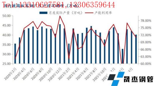 調(diào)研數(shù)據(jù)顯示:據(jù)監(jiān)測(cè)的26家鍍錫板生產(chǎn)企業(yè)中,共計(jì)49條產(chǎn)線,2022年5月份產(chǎn)能利用率71.02%,月環(huán)比下降2.66%,同比下降5.08%;5月鍍錫板實(shí)際產(chǎn)量40.14萬噸,月環(huán)比減少2萬噸,同比減少3.32萬噸;另外,對(duì)國內(nèi)重點(diǎn)鍍鉻生產(chǎn)企業(yè)調(diào)研數(shù)據(jù)顯示,5月份鍍鉻板產(chǎn)量共計(jì)7.32萬噸。