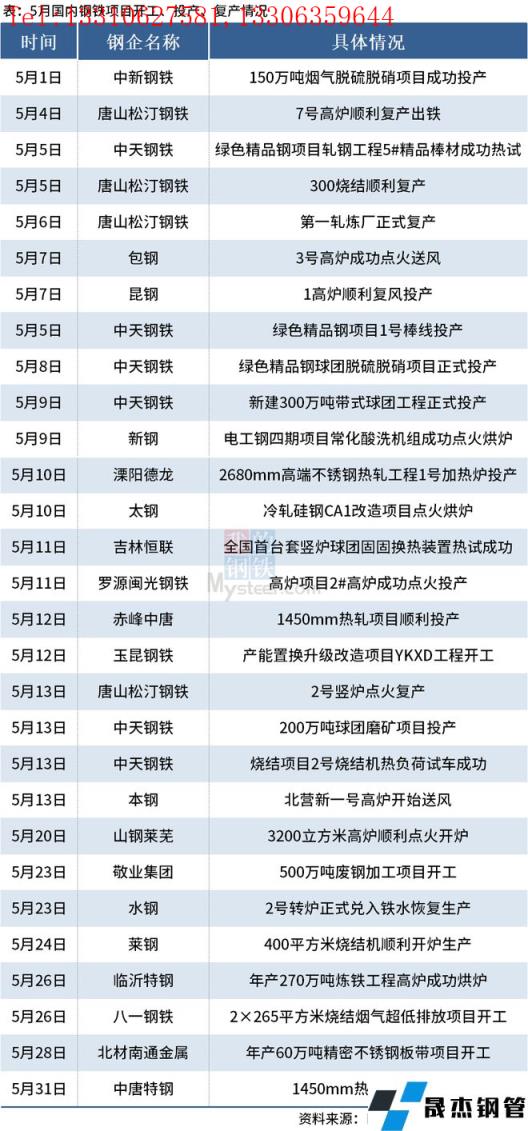 免責聲明:本網(wǎng)站(山東聊城晟杰無縫鋼管廠www.ginginbaby.com)刊載的“5月國內(nèi)29個鋼鐵項目開工、投產(chǎn)或復產(chǎn)”等均源于網(wǎng)絡,版權歸原作者所有,且僅代表原作者觀點,本文所載信息僅供參考。轉(zhuǎn)載僅為學習與交流之目的,如無意中侵犯您的合法權益,請及時聯(lián)系刪除。本網(wǎng)站刊登此篇文章并不意味著本站贊同其觀點或證實其內(nèi)容的真實性,我們不對其科學性、嚴肅性等作任何形式的保證。如果侵犯了您的版權,請盡快聯(lián)系我們予以撤銷,謝謝合作!