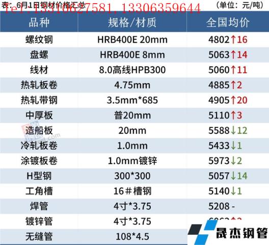 建筑厚壁無縫鋼管:6月1日,全國31個主要城市20mm三級抗震螺紋鋼均價4802元/噸,較上個交易日漲16元/噸。國內(nèi)建筑厚壁無縫鋼管價格整體延續(xù)31日漲勢。短期來看,當前市場信心有所恢復,加之臨近端午小長假,市場存在節(jié)前備貨預期。因此預計2日國內(nèi)建筑厚壁無縫鋼管價格將延續(xù)小幅上漲運行態(tài)勢。