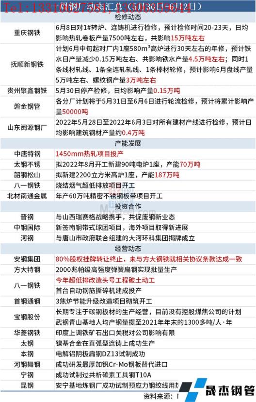 據(jù)不完全統(tǒng)計,本周(5月30日-6月2日)有5家無縫厚壁鋼管廠家發(fā)布檢修計劃,具體如下: