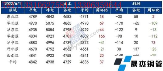 獨立電弧爐建筑厚壁無縫鋼管無縫厚壁鋼管廠家周度成本調研(2022年6月1日)(單位:元/噸)
