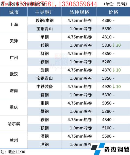 ◎天津:7日早盤(pán)冷軋市場(chǎng)價(jià)格下調(diào)30元/噸,1.0天鐵5340元/噸;首鋼5330元/噸,唐鋼5300元/噸,成交一般。(單位:元/噸)