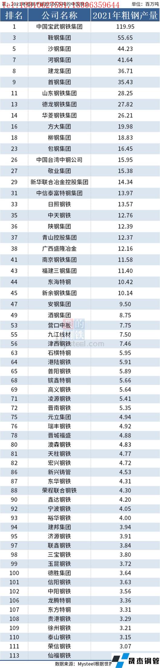 免責(zé)聲明:本網(wǎng)站(山東聊城晟杰無(wú)縫鋼管廠www.ginginbaby.com)刊載的“2021年中國(guó)64家重點(diǎn)鋼企粗鋼產(chǎn)量排名”等均源于網(wǎng)絡(luò),版權(quán)歸原作者所有,且僅代表原作者觀點(diǎn),本文所載信息僅供參考。轉(zhuǎn)載僅為學(xué)習(xí)與交流之目的,如無(wú)意中侵犯您的合法權(quán)益,請(qǐng)及時(shí)聯(lián)系刪除。本網(wǎng)站刊登此篇文章并不意味著本站贊同其觀點(diǎn)或證實(shí)其內(nèi)容的真實(shí)性,我們不對(duì)其科學(xué)性、嚴(yán)肅性等作任何形式的保證。如果侵犯了您的版權(quán),請(qǐng)盡快聯(lián)系我們予以撤銷,謝謝合作!