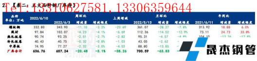 本周總庫(kù)存近五周首次累增,其中無(wú)縫厚壁鋼管廠(chǎng)家?guī)齑姝h(huán)比持續(xù)下降,社會(huì)庫(kù)存環(huán)比擴(kuò)張;目前無(wú)縫厚壁鋼管廠(chǎng)家?guī)齑娉掷m(xù)下降的原因仍然在于無(wú)縫厚壁鋼管廠(chǎng)家加快庫(kù)存前移操作,市場(chǎng)備庫(kù)降低廠(chǎng)庫(kù)壓力。而社會(huì)庫(kù)存本周環(huán)比明顯累增,主因在于本周廣東、四川、云南、重慶、湖南等省出現(xiàn)連續(xù)性降水,以及端午假期和全國(guó)性高考,導(dǎo)致運(yùn)輸不暢,城市工程建設(shè)限制,進(jìn)而使得交易氛圍不佳,社庫(kù)出現(xiàn)累增。短期來(lái)看,伴隨臨時(shí)性因素影響程度減弱后,采購(gòu)情緒會(huì)有小幅恢復(fù)。但是臨近淡季,需求不佳已是事實(shí),不排除庫(kù)存仍有累增,但增幅或低于預(yù)期。