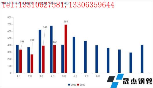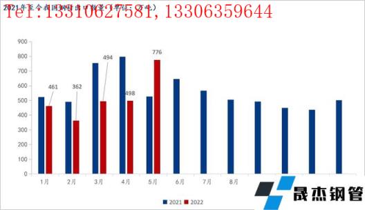 前言:海關總署6月9日數據顯示,2022年5月中國出口厚壁無縫鋼管775.9萬噸,較上月增加278.2萬噸,同比增長47.2%,環比大幅增長56.89%;1-5月累計出口厚壁無縫鋼管2591.5萬噸,同比下降16.2%,環比增長8.63%;