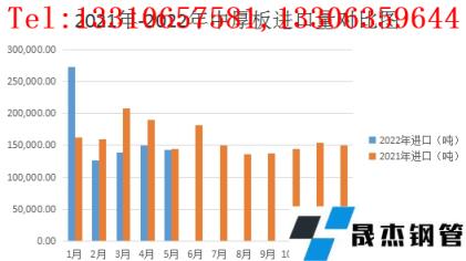圖9 中厚板產品2021-2022年度進口量對比圖