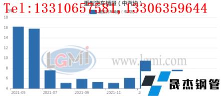 5月份國內重型貨車銷量為4.9萬輛,環比4月份增加0.5萬輛。同比21年同期減少約11.3萬輛。