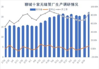 圖4 2022年上半年臨沂七家無(wú)縫管總庫(kù)存及開(kāi)工率