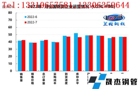 云商平臺統計發布的2022年7月份厚壁無縫鋼管流通業PMI總指數為46.7%,比上月回升0.6個百分點,在收縮區間內低位回升。從分類指數看,構成厚壁無縫鋼管流通業