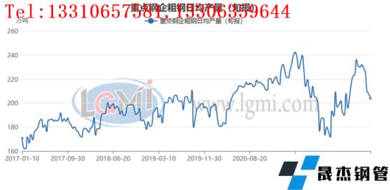 圖2 2017-2022年大中型厚壁無縫鋼管企業粗鋼旬產