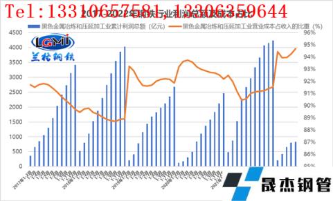 圖4 2017-2022年厚壁無縫鋼管行業利潤總額及成本占比
