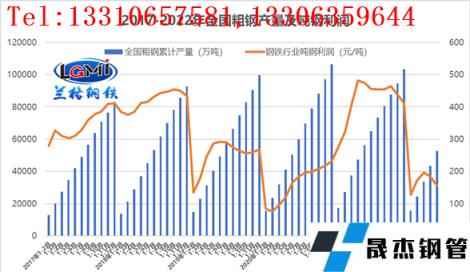 圖6 2017-2022年全國粗鋼產量及噸鋼利潤
