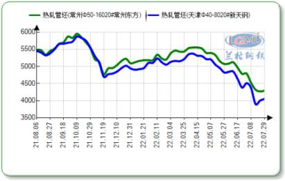 7月末,北方地區(qū)無縫鋼管廠家20#熱軋管坯出廠報(bào)價(jià)4050-4240元,20#連鑄出廠報(bào)價(jià)3940-4150元;南方地區(qū)20#熱軋出廠報(bào)價(jià)4240-4570元,北方新天鋼、南方東方兩家無縫鋼管廠家熱軋管坯價(jià)差維持在190元左右,較7月中旬相比兩者價(jià)差有所收窄。受美聯(lián)儲(chǔ)加息預(yù)期及國內(nèi)需求持續(xù)低迷影響,管坯價(jià)格大幅下跌,北方地區(qū)熱軋管坯價(jià)格跌至3970元,創(chuàng)近一年以來的新低,不過在7月27日筑底后管坯價(jià)格呈現(xiàn)小幅上揚(yáng)走勢(shì)。