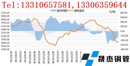 圖5 唐山長流程無縫鋼管廠家鋼坯(累計)成本—利潤示意圖