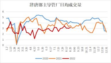8月在統(tǒng)計高爐開工率小幅抬升。8月28日,網(wǎng)統(tǒng)計全國主要厚壁無縫鋼管企業(yè)高爐按容積計算開工率78.74%,較上月末上升3.41個百分點,月度平均開工率較上月下降0.11個百分點。其中8月唐山在統(tǒng)計熱軋帶鋼產(chǎn)線平均產(chǎn)能利用率54.34%,環(huán)比下降7.79個百分點。長流程高爐鐵水恢復(fù),短流程因限電影響生產(chǎn)。不過,月內(nèi)冷軋基料、帶鋼和熱卷之間價差仍然偏窄,可替代性較強。管廠操作傾向謹慎樂觀,多需求驅(qū)動排產(chǎn),短期供應(yīng)增勢緩和。